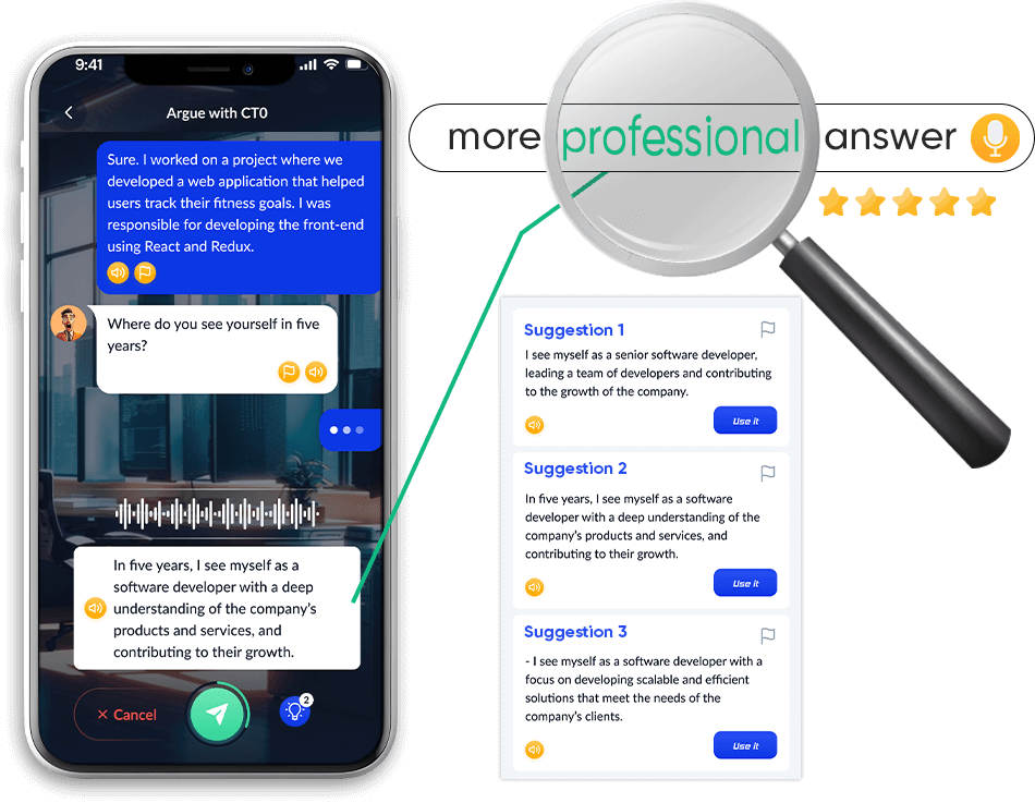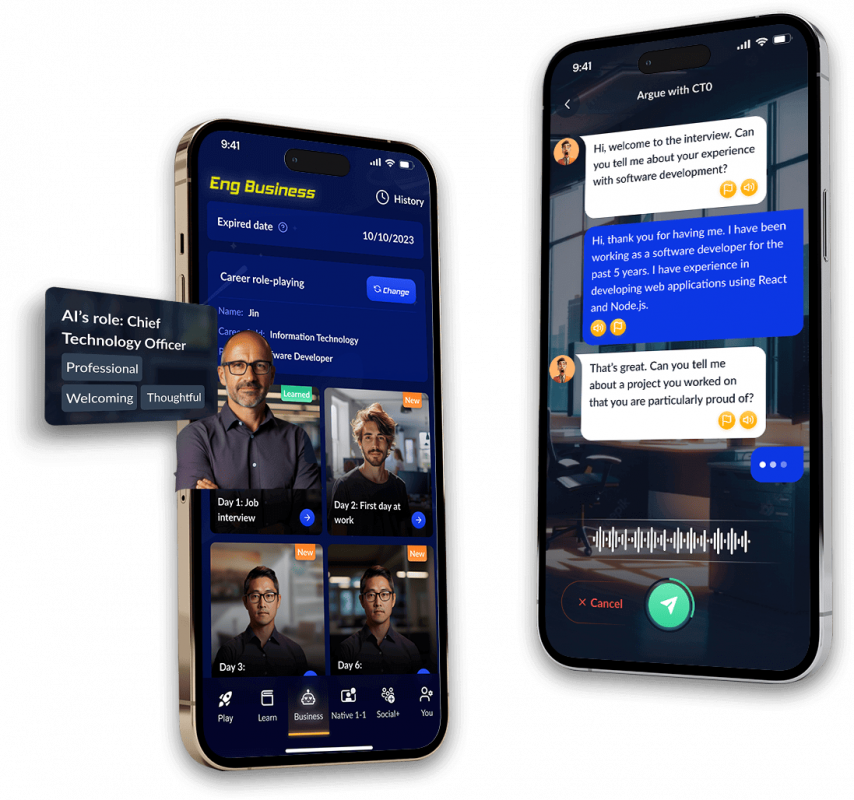 - Nhập vai với gia sư A.I thực hành với từng tình huống cụ thể