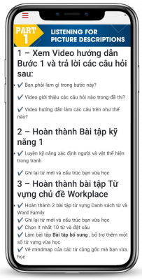 Hướng dẫn học chi tiết từng bước làm bài cho từng phần của bài thi và checklist chi tiết mục tiêu chinh phục từng ngày