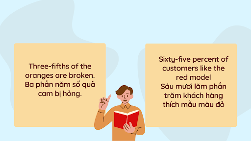 Ví dụ: Three-fifths of the oranges are broken.